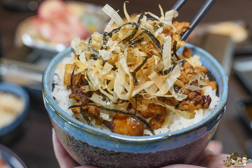主廚秘製的麻辣豚肉飯,搭配柴魚帶出海味