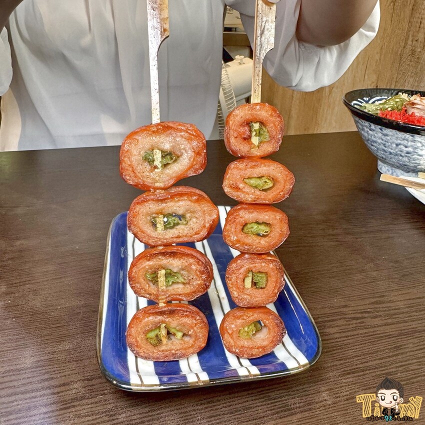 明太子焗烤榴槤捲(220元),沒想到老闆竟然將炸榴槤和明太子結合在一起,還沒吃之前,我們還在想說味道會不會很奇怪…