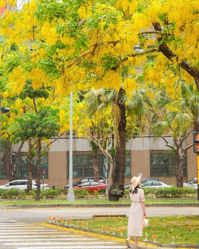 高雄阿勃勒熱門打卡地位於鼓山第三市場附近的九如四路上,最遠可以延伸到中華一路果貿社區。這裡的阿勃勒步道比較特別,是種植在安全島上,行人也可以步行在人行道上,每當阿勃勒盛開時總會吸引許多賞花遊客。順帶一提,自去年高雄輕軌通車後,連帶著交通也變得更方便,搭乘輕軌到內惟藝術中心站下車再步行約10分鐘就可抵達,在此之前還能先拍時下最熱門的龍貓隧道呢!