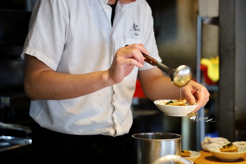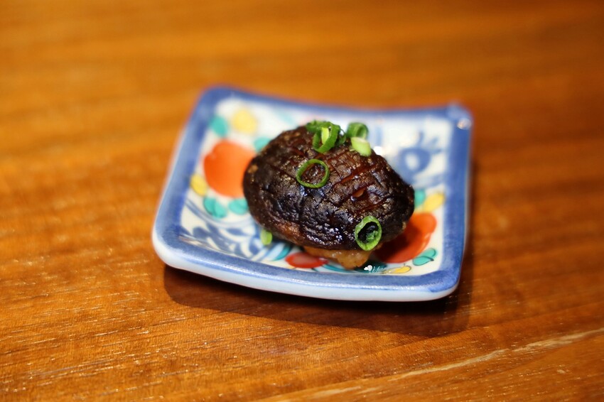 採玉米、葛粉及牛奶自製出的玉米豆腐為底,放上鮮香金黃的北海道赤海膽,雖然玉米的味道稍重,有點搶了海膽的風采,但入口甜美細膩的滋味,依然很美妙。