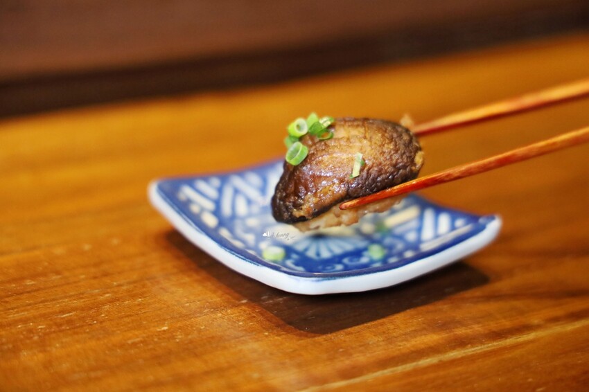 大朵的香菇採先炸後煮,並在裡頭包覆著鮮蝦、洋蔥、荸薺的餡料。咬下香菇,整個嘴巴充斥著香氣,而且充滿了水份。接著內餡的鮮甜及醬香,又刺激著味蕾,令人意猶未盡。