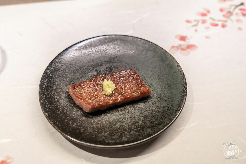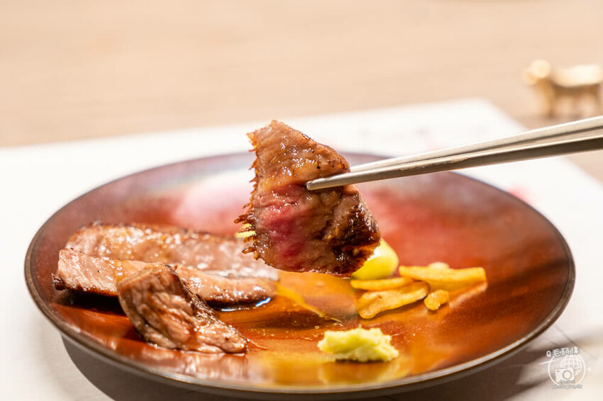 接下來就是最期待的和牛牛排了😍看看這分佈均勻細緻的油花,宛如大理石紋般的迷人亮眼。