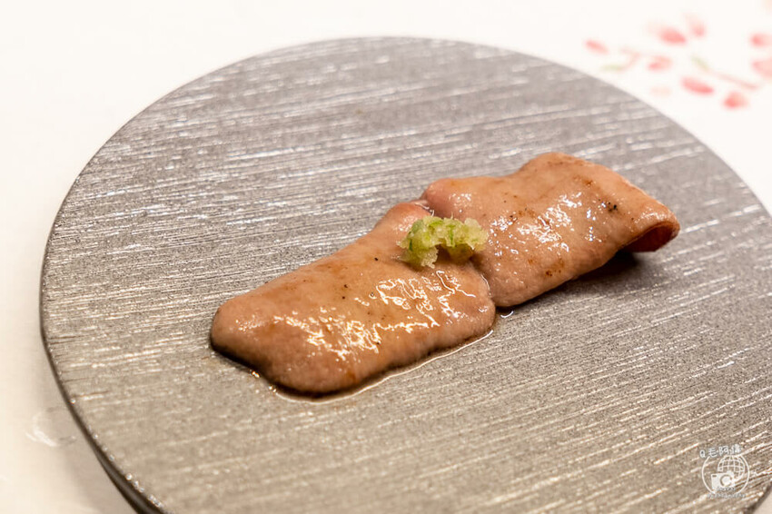 還有這道紫蘇洋蔥和牛捲也很厲害,把完美熟度的牛肉捲起,放上洋蔥絲後,再用紫蘇包覆,這一口下去,先是洋蔥的脆口微嗆,再來是牛肉甘甜,最後才是紫蘇清香收尾,這組合…厲害!