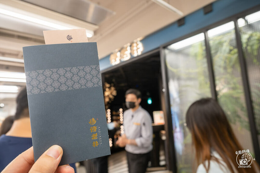 去吃《侍老井》的時候,那時候還採預約制,碰碰好幾次運氣後,侍老井訂位終於成功,侍老井門前會先確認定訂位,從外面看進去,可以看到裡面呈現比較暗調的感覺。