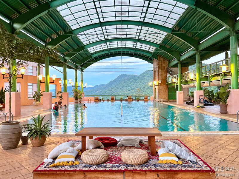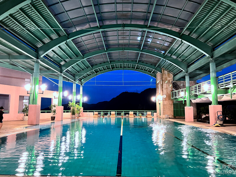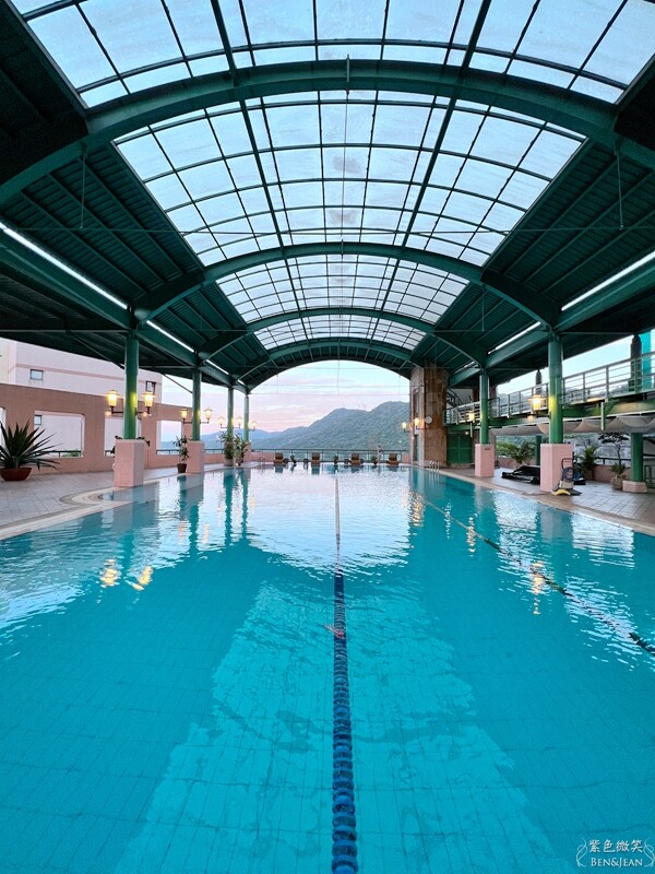這個泳池很漂亮吧,有頂蓋可透光,還可眺望石門大壩風光,另有兒童泳池,所以大人小孩都可以玩的很開心