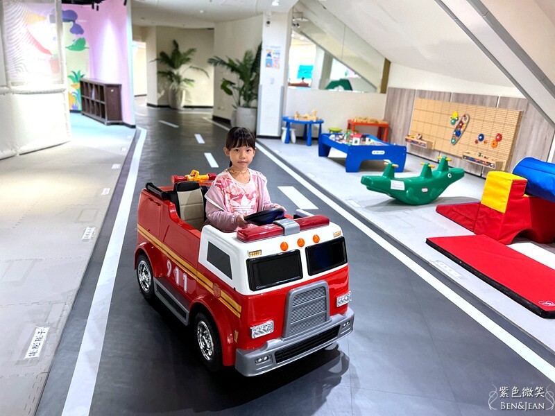 飯店還將走道變身成汽車賽道,讓孩子可以繞著玩,如果孩子比較小,也可以用遙控器,父母陪著孩子一起開車