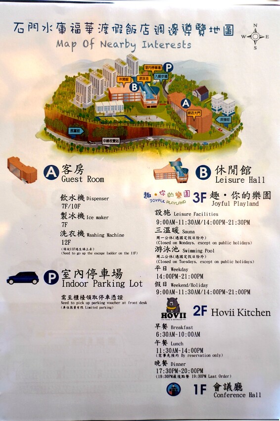 提供飯店周邊導覽圖,住宿都在A棟,休閒設施及餐廳在B棟。要先搞清楚哦