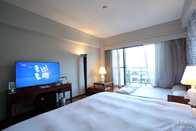 這次入住和式湖景房! 還有個小和室,透過落地玻璃窗與陽台,石門水庫優美風光盡入眼簾