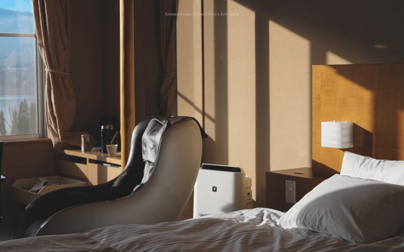 當然,最後會選 SUNNIDE Resort,最重要還是為了起床後,走到窗邊拉開窗簾,就能看到的河口湖與富士山的無敵美景。本來很期待能看見逆富士,但前一天下午在天上山公園時,就開始烏雲密佈,把富士山遮了個嚴實。所以我早上起床,拉開窗簾的前一刻實在非常緊張,最後拉開窗簾那剎那——還是被眼前的屏息美景驚艷住了!