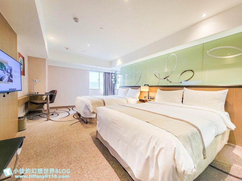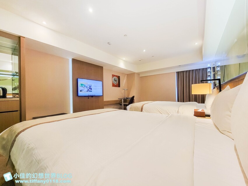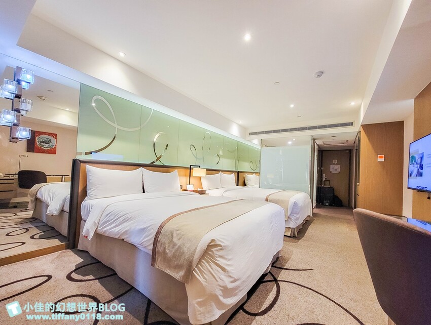 雅緻家庭房的室內空間約8.5坪,有兩張中床150*200cm,房間大小我覺得以四人房的空間來說是剛剛好,飯店很聰明的運用許多鏡子讓室內空間感看起來更大。