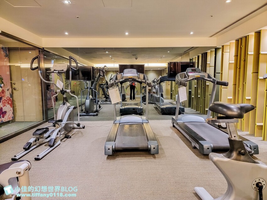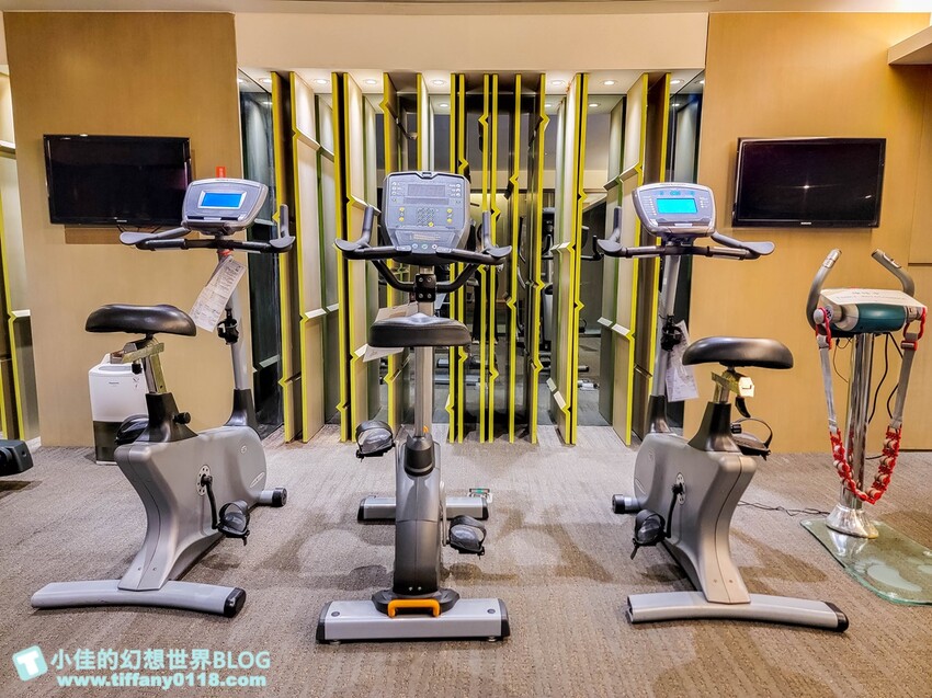 飯店的B1有健身房,房客需憑房卡感應進入,裡面空間不到非常大,但設施還滿多的,有跑步機、健身腳踏車、騎馬機等設備。