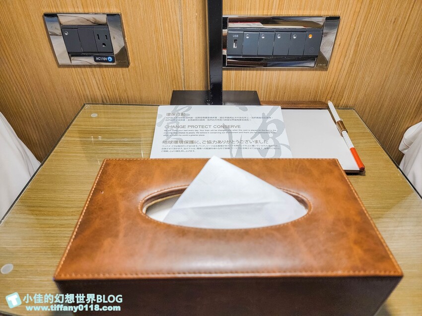 床頭桌有控制整間房間燈的開關、USB孔及三孔插座