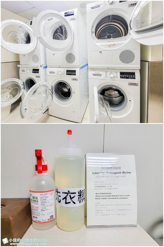 飯店的八樓及十樓都有提供免費自助洗衣及烘衣的服務,很少看到飯店是免費提供的,通常都是要付費送洗或是自己投幣洗的,高雄翰品酒店居然連洗衣精都幫忙準備好了有夠貼心。