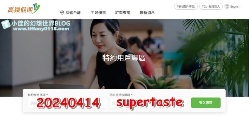 1.只要看到文章裡有「高鐵假期」的都有設定連結可以直接點入,然後看右上角有一個「特約用戶專區」點進去