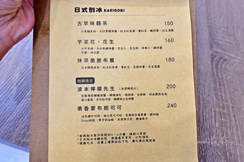 櫃檯前有冰品的實際照片,小戶室的ig也有照片可以參考,有照片真的很加分,不過看了更是選擇困難,可惡,每一種都想吃吃看,價格雖不便宜,但可以兩個人吃一碗,日式刨冰本來價格就偏高一些。