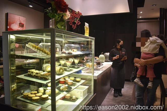 餐後移動至飯後甜點專區,特別設置的甜點櫃,裡面都是自家甜點師傅精心手作的甜點,品項多達20種可以選擇,是一般高級鐵板料理所少見。