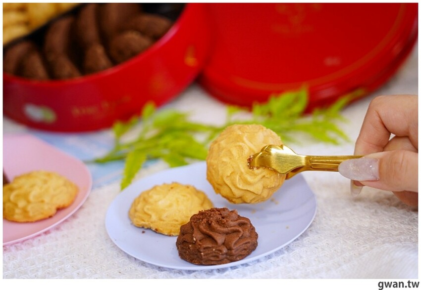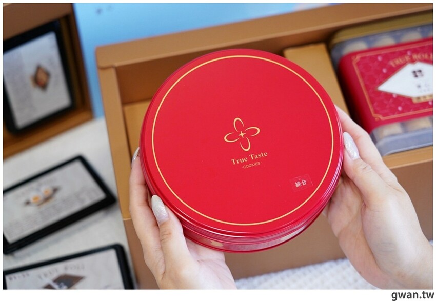 曲奇餅乾是紅色鐵盒包裝,看起來很喜氣