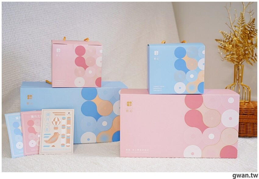 這次跟你們分享「實心貝比雙蛋捲禮盒」、「實心貝比輕奢禮盒」以及「實心貝比提盒」三款彌月禮盒,禮盒本身就有包裝與提繩設計,不需要另外裝袋了,還有柔和粉與清新藍兩種顏色