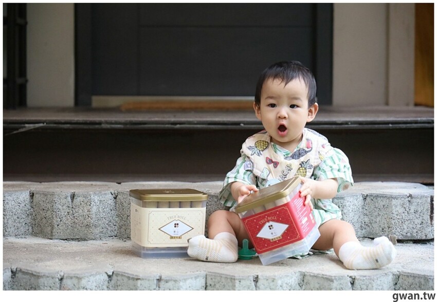 喜歡簡約的彌月款式可以選實心貝比提盒,四種口味粹蛋捲隨你搭