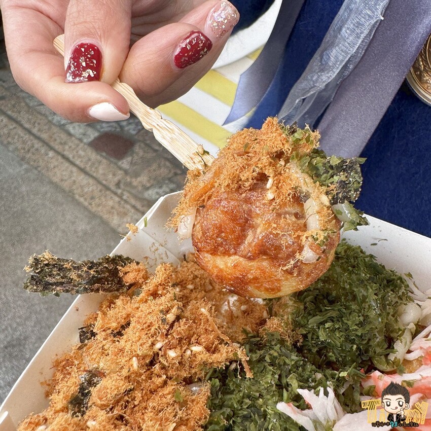 一口咬下脆脆的外皮,搭配沙拉和海苔粉,有鹹鹹甜甜的風味~