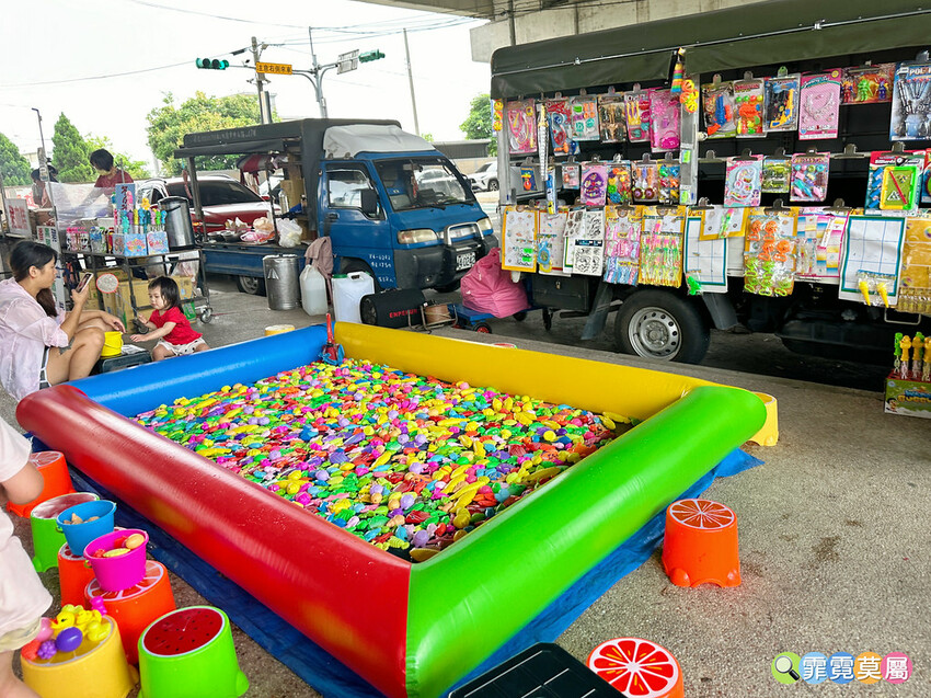 我們假日去還有設攤就像小型夜市,有打彈珠台、撈魚池、氣墊溜滑梯等,還會有小吃攤販可以買雞蛋糕、烤香腸之類補給一下
