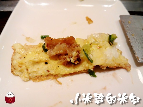 不過蛋皮裡面包的不是炒飯,而是豬肉,上面淋上白色美乃滋、秘方醬汁與灑了一大把的青蔥