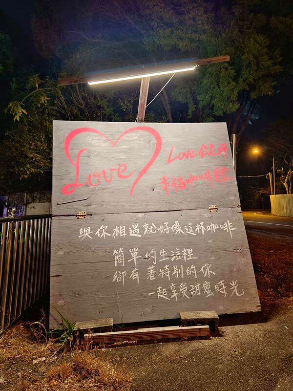 這個就是Love公老坪幸福咖啡館的手寫招牌,直接放在馬路的轉彎處,路過的人都很容易看到