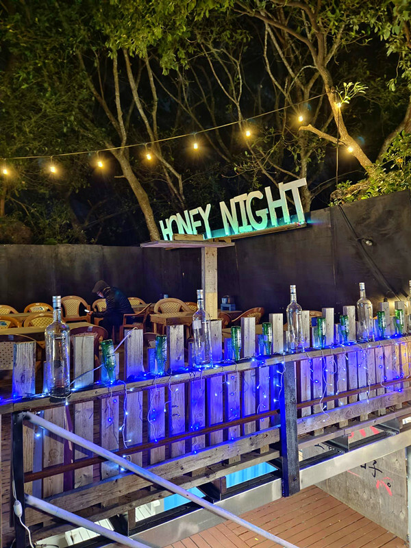 Love公老坪幸福咖啡其實是利用高低階落差的木造+鐵皮建築,所以用餐的客人還必須往樓梯上走,不難看出連空酒瓶都變成了裝飾品