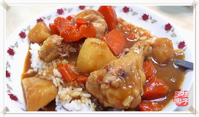 咖哩飯數台式風味,兩小根的棒腿與滿滿的紅蘿蔔與馬鈴薯,挺實在的。