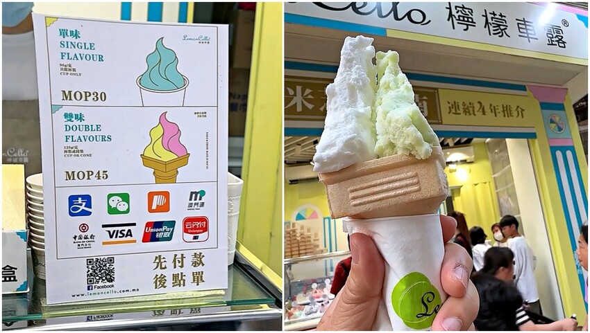我們買了雙味的,分別是檸檬車露及開心果口味。