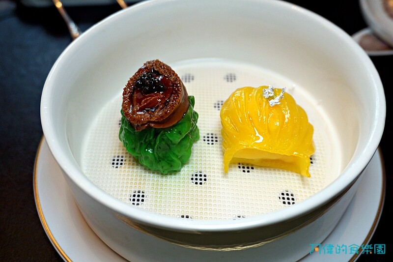 用了法國魚子醬+南非鮑魚頂級進口食材,與菠菜汁做的皮,色香味俱全。