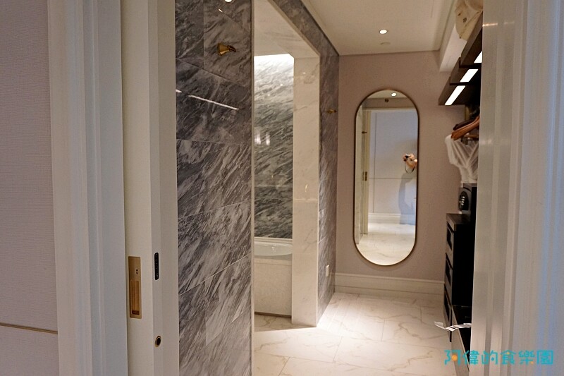 浴室由此進,右邊是衣櫥,所以前面有個穿衣鏡。