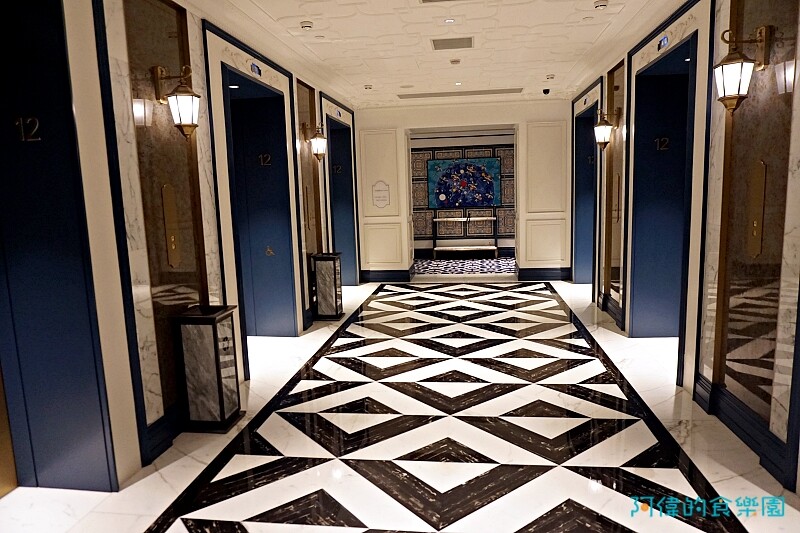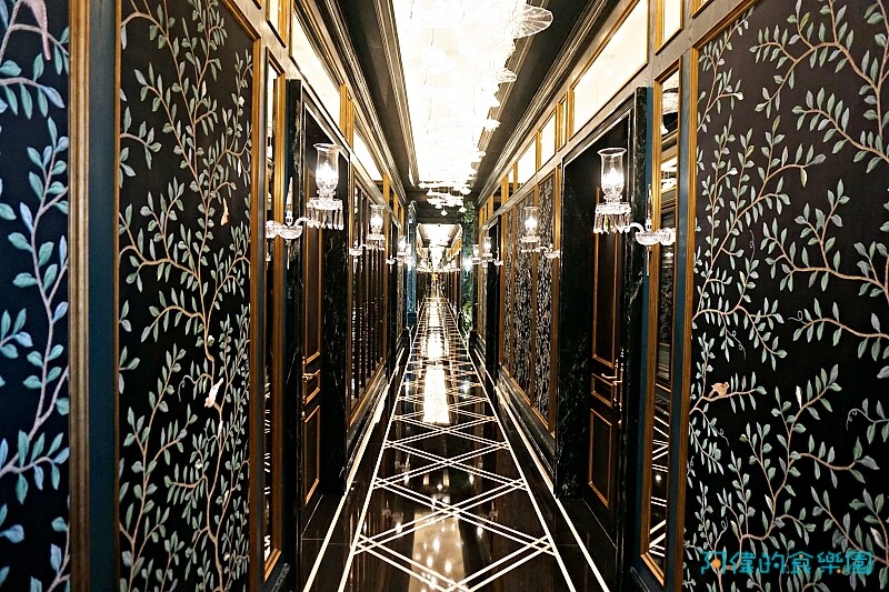 搭電梯上三樓後,要走過長長的走廊,整個黑與金的質感裝潢,有種神秘尊貴的氣氛。