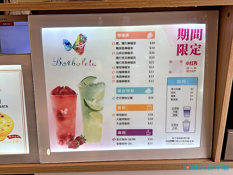 充滿蝴蝶元素的櫃檯,其實主因是賣蝶豆花飲品。