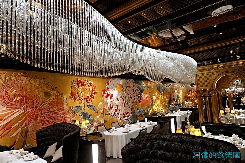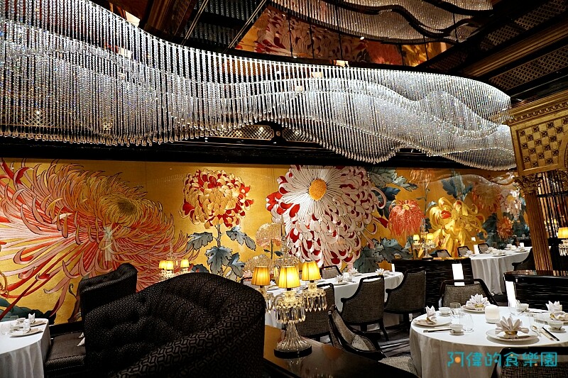 那面金色的牆可是大有來頭,它是長35米高2.5米的絲綢蘇繡,是由60位蘇繡師傅花了12年打造完成。創作靈感來自於日本藝術家長谷川契華百年前的木刻版畫古籍《契花百菊》,用蘇繡繡出不同姿態、花色的菊花,真是美不勝收。