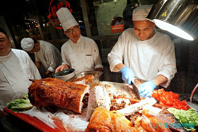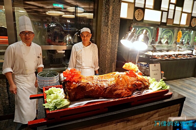 每晚都會有特別的限量食材,像這隻烤乳豬出場時,是由工作人員敲鑼並檯著它繞場一圈,告知所有食客想吃的來排隊喔~