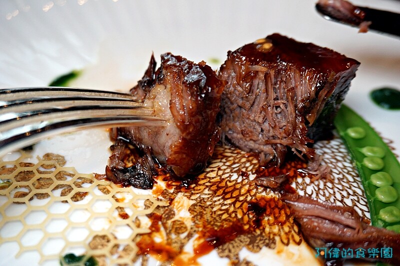 整個盤飾超美的!使用加拿大的無骨牛小排低溫烹調,這在台灣不曾吃過,超期待!