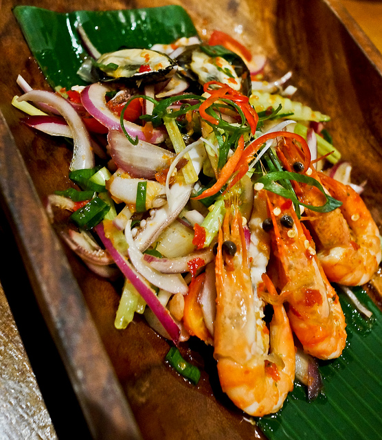 很棒的開胃菜。海鮮種類非常豐富,用料也非常新鮮。菜本身口味略重些,但泰國菜這種酸與辣的作法總是感覺得很開胃,就算天氣有點熱,都會因為這樣的口感胃口大開