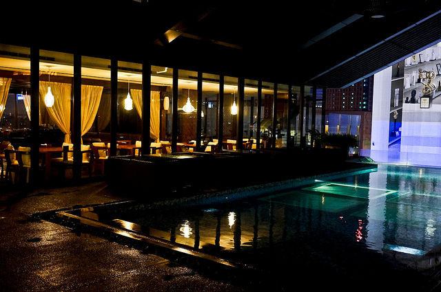 到達頂樓,會先看到一整面水池,請不要就這樣摔下去了
