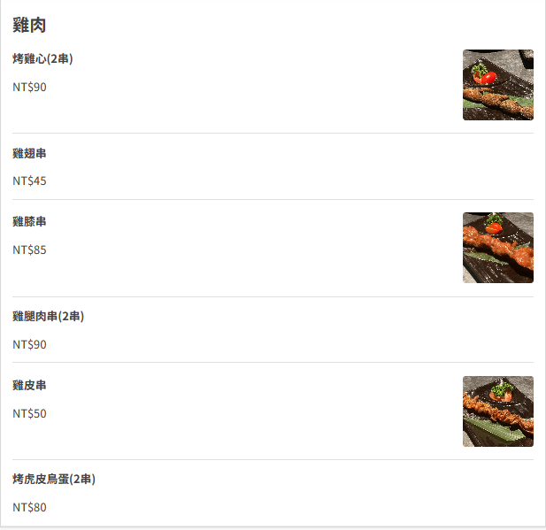 雞腿肉串使用的是台灣國產雞肉,比較不會有腥味,嫩又有肉甜味
