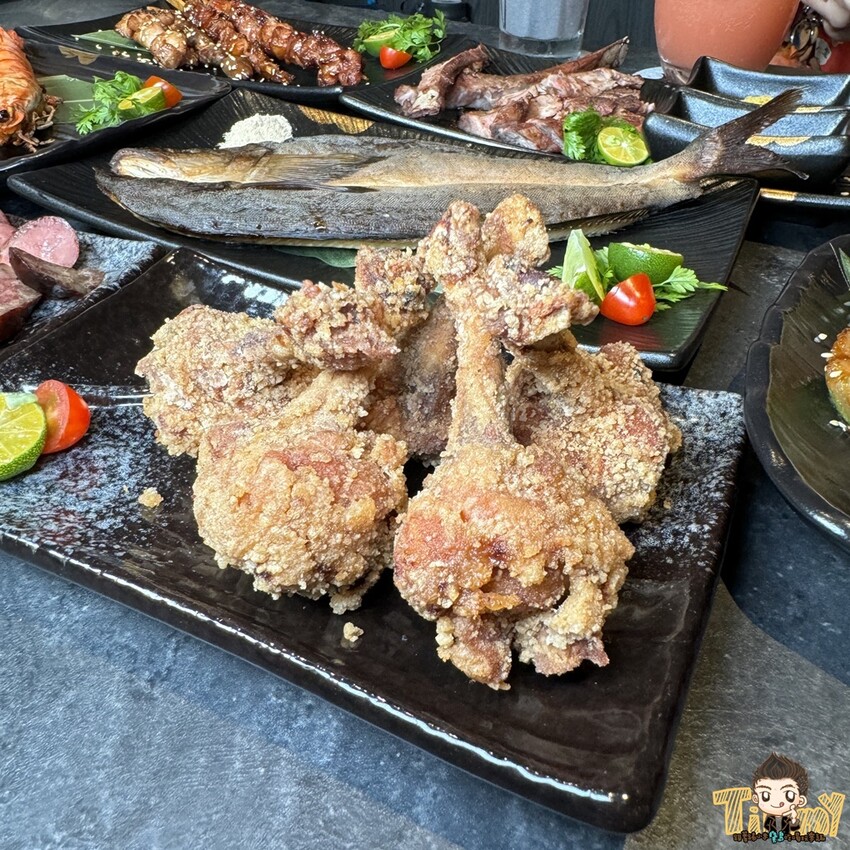 烤雞皮脆脆的很下酒,雞翅串嫩又有脆口的軟骨~