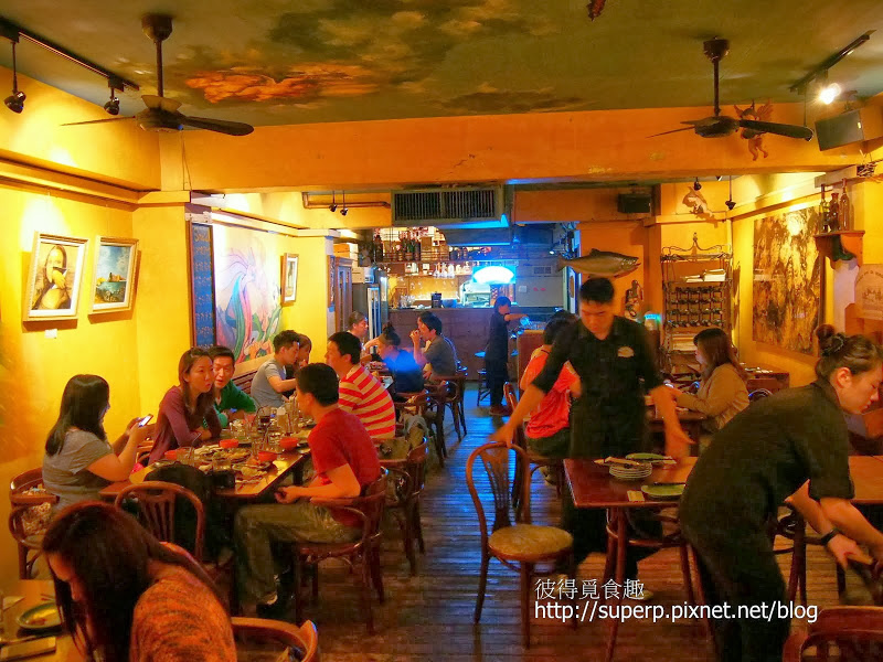 店內的生意算不錯。這天平日晚上,也還有7成滿。裝潢的話,還算舒服。不過燈光非常灰暗,因此這天拍出來的照片品質不佳。