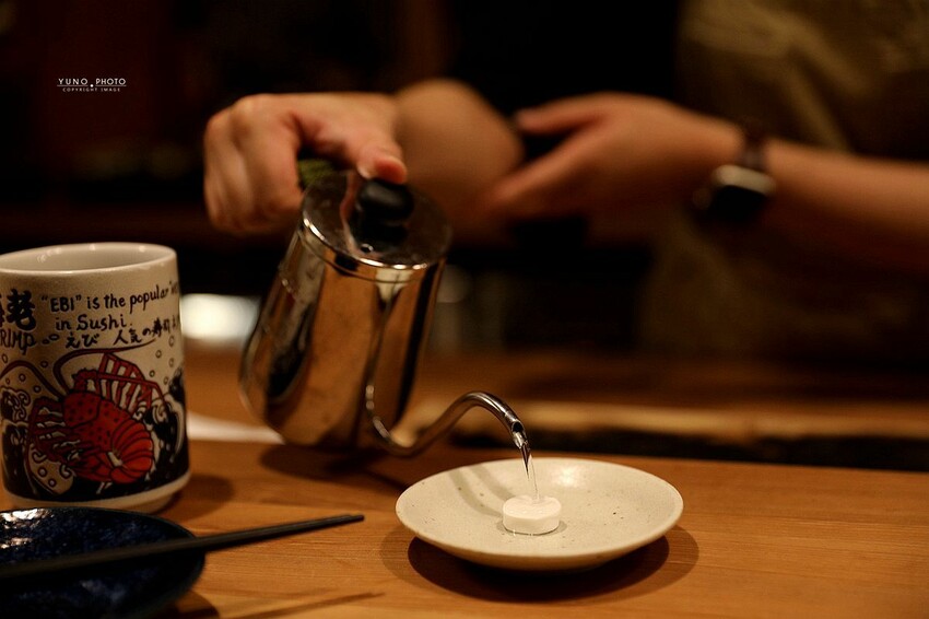 一坐上位置 只見服務員就送上壓縮濕紙巾 相當用心還有著淡淡的檜木香氣