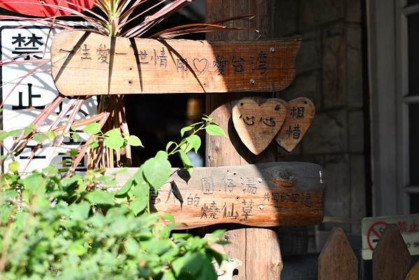 用餐區在戶外,一整牌的木製桌椅還蠻特別的,也可以遮陽,