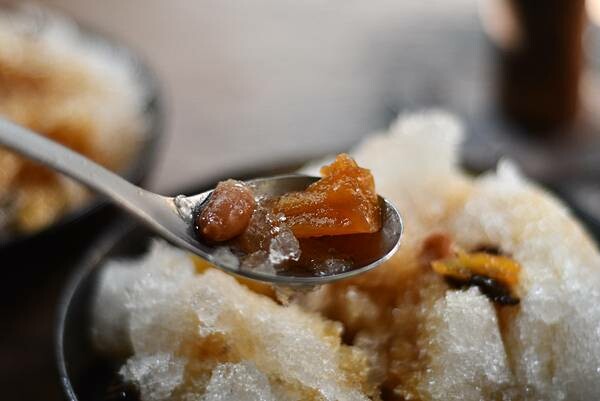 蜜蕃薯煮的好入味,加在剉冰裡,冰鎮後吃起來QQ的,濃濃古早味,好好吃喔!