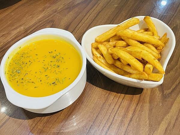 餐點主要就是義大利麵和燉飯,可以選白醬、紅醬、粉紅醬就這三種,也可以加價多了湯和薯條,小朋友特別喜歡吃薯條,就點了一份。