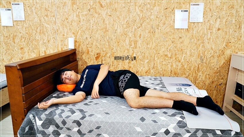 我想說弟弟那麼認真地在瞧牆上的海報,原來是因為有藝人來店裡試躺床墊,然後挑選一款滿意的買回家