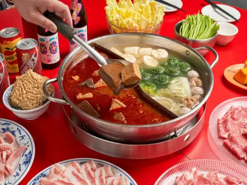 鍋底我們選擇鴛鴦鍋,麻辣鍋與養生鍋。