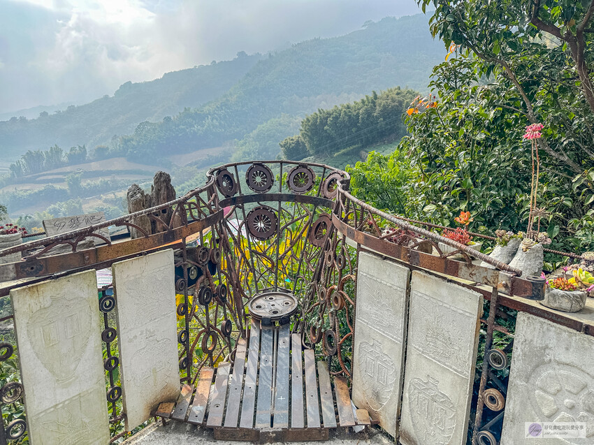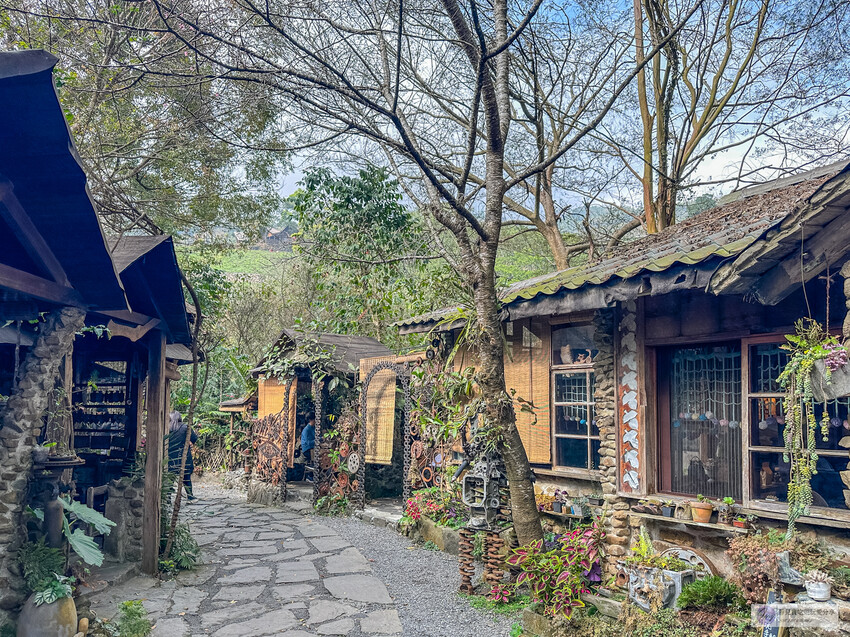 阿將使用多種自然建材打造而成的石屋,也使用了回收鐵建創作,而將嫂喜愛多肉植物,一柔一剛打造出此園區,融入森林裡更是無違和感,阿里山的天氣也很多變,偶有雲霧繚繞的氛圍也是相當夢幻~
