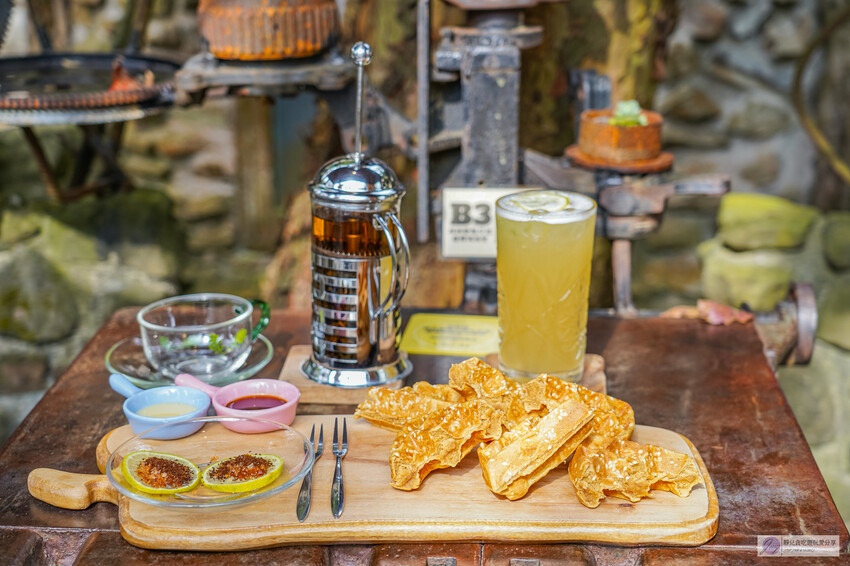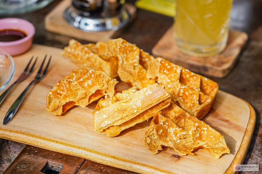 米鬆餅口感很特別,很像黑糖糕的口感,外層帶點微酥,內層軟Q,可以沾上一旁的黑糖或煉乳沾醬,不過沾不沾醬都相當不錯,咖啡粉佐檸檬片個人也喜歡,上面有撒上些黑糖,吃起來酸甜酸甜,解膩又好吃